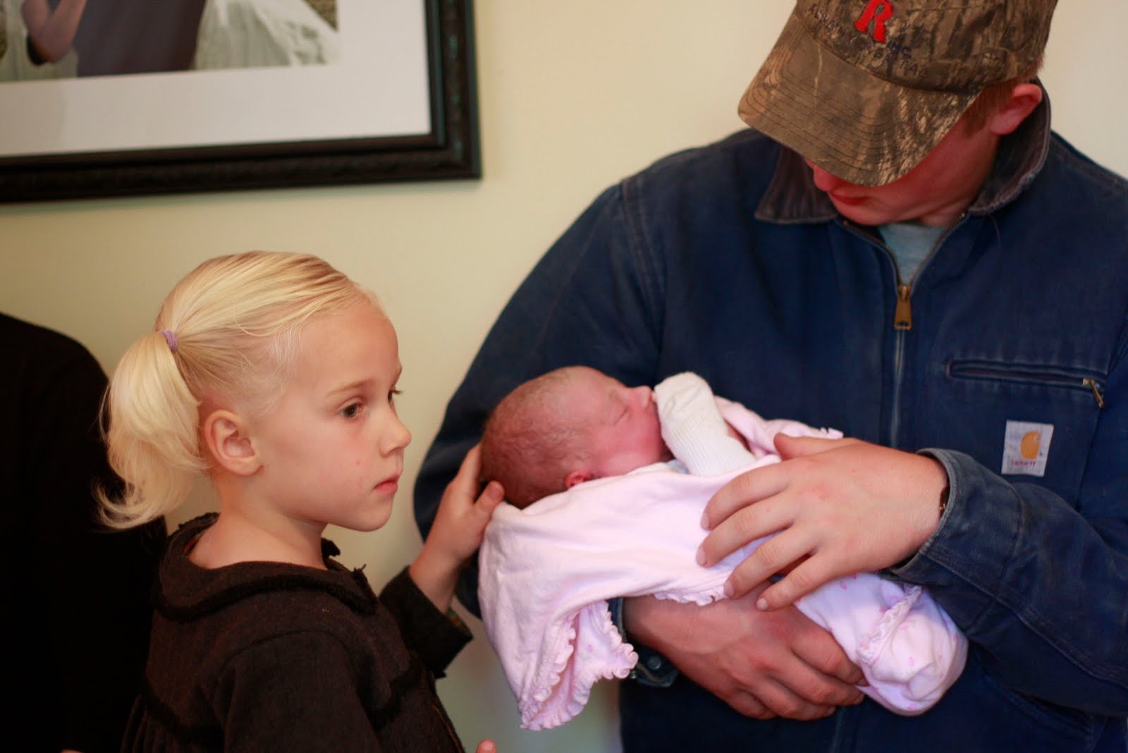Big sister Emma holding her little sister for the first time. It was none too soon in her opinion!